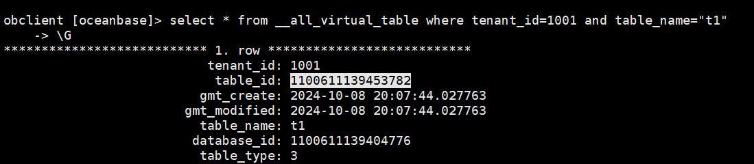 obclient [oceanbase]> select t.table_id,p.partition_id , p.svr_ip , p.role , p.zone from __all_virtual_table t join gv$partition p on p.table_id=t.table_id where t.tenant_id=1001 and p.role=1 order by table_id desc;