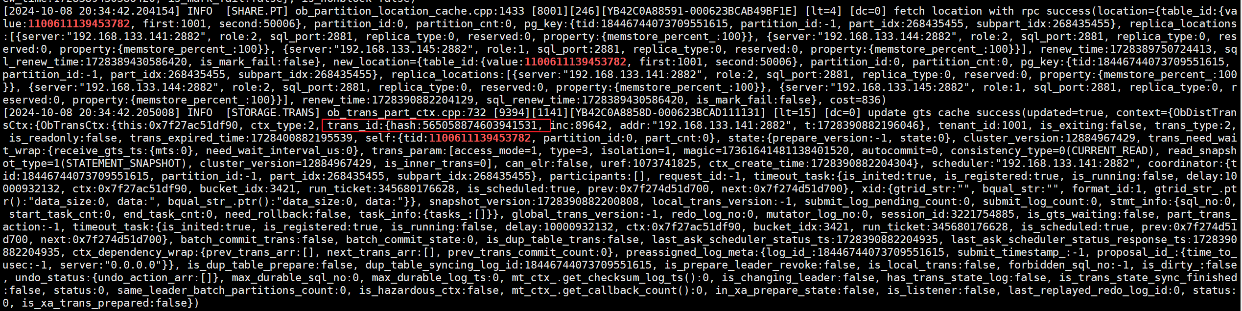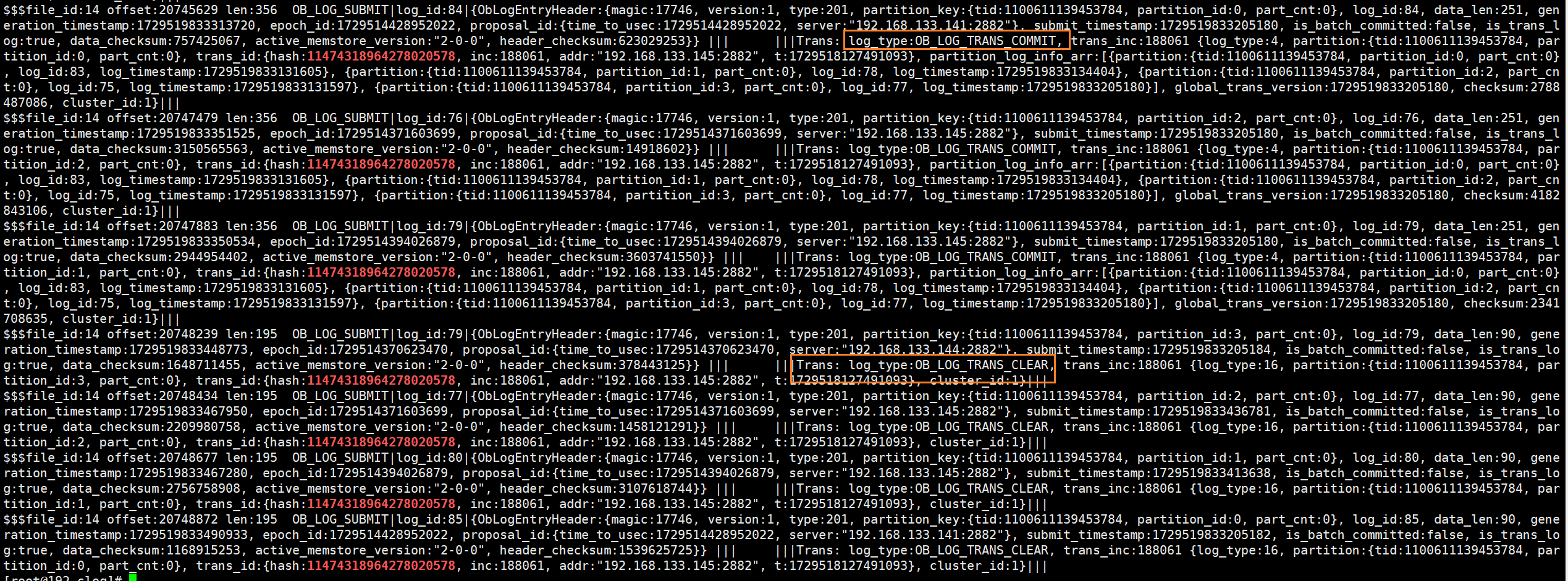 (8)根据事务id来grep 解析后的其他节点clog文件可见ob_log_sp_trans_commit日志已经从leader副本同步至了follower副本。