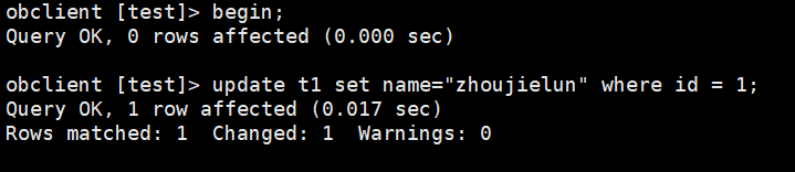 obclient [test]> update t1 set name="liuzizhuo_update1" where id=1;