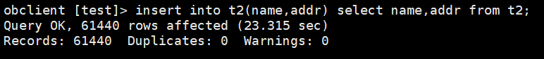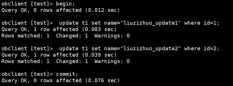 obclient [test]> update t1 set name="liuzizhuo_update2" where id=2;