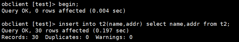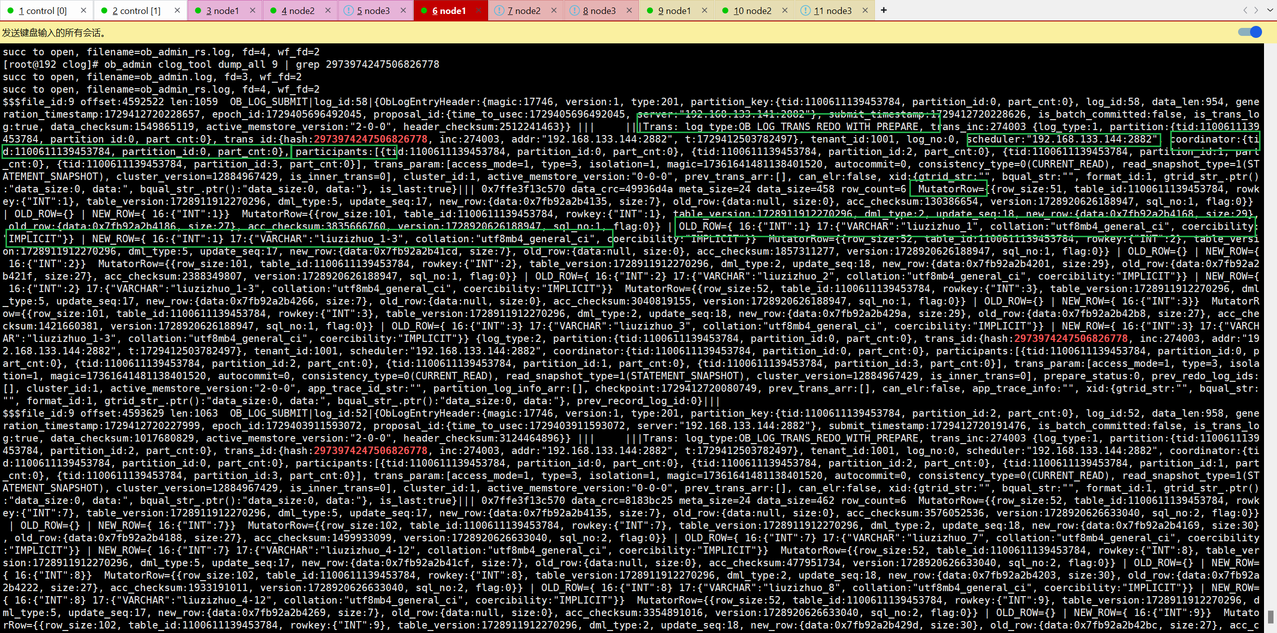 - 本实验是:在一个事务内将4个分区的12行数据全部修改,以构造一个分布式事务,并观察ob的行为与clog写入情况。
