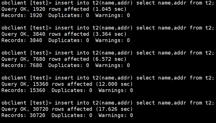 obclient [test]> update t1 set name = "liuzizhuo_all" where id >= 1 and id <= 12;