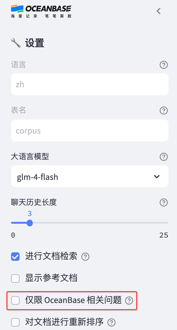- 然后通过智谱 ai 的 llm 能力分析用户问题,基于从 oceanbase 向量数据库中检索到的相关内容,给出答案。