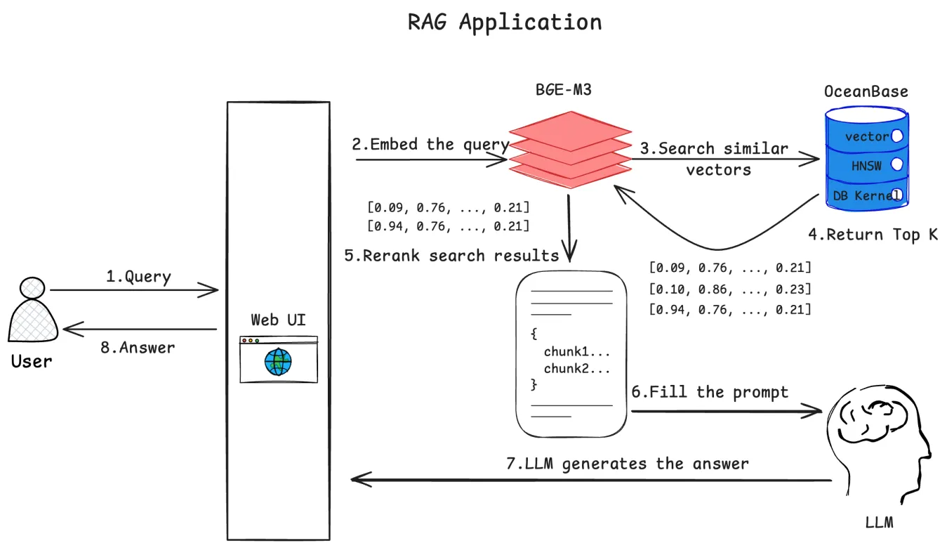 - oceanbase 在这个机器人中的作用,是存储和查询数据源对应的向量数据的数据库。