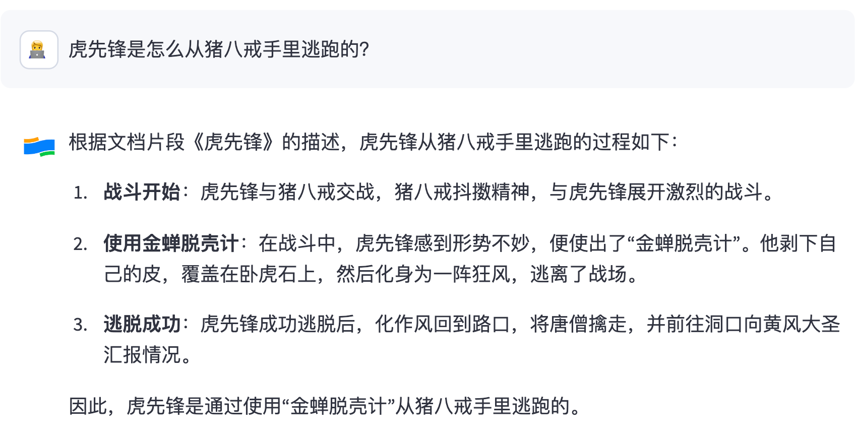 如果你要问它数据源里不存在的内容,它可能就要一本正经地胡说八道,或者让你 “听君一席话,如听一席话” 了。例如: