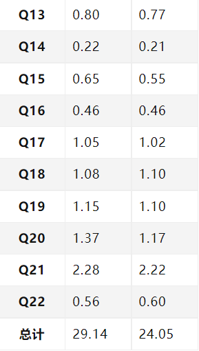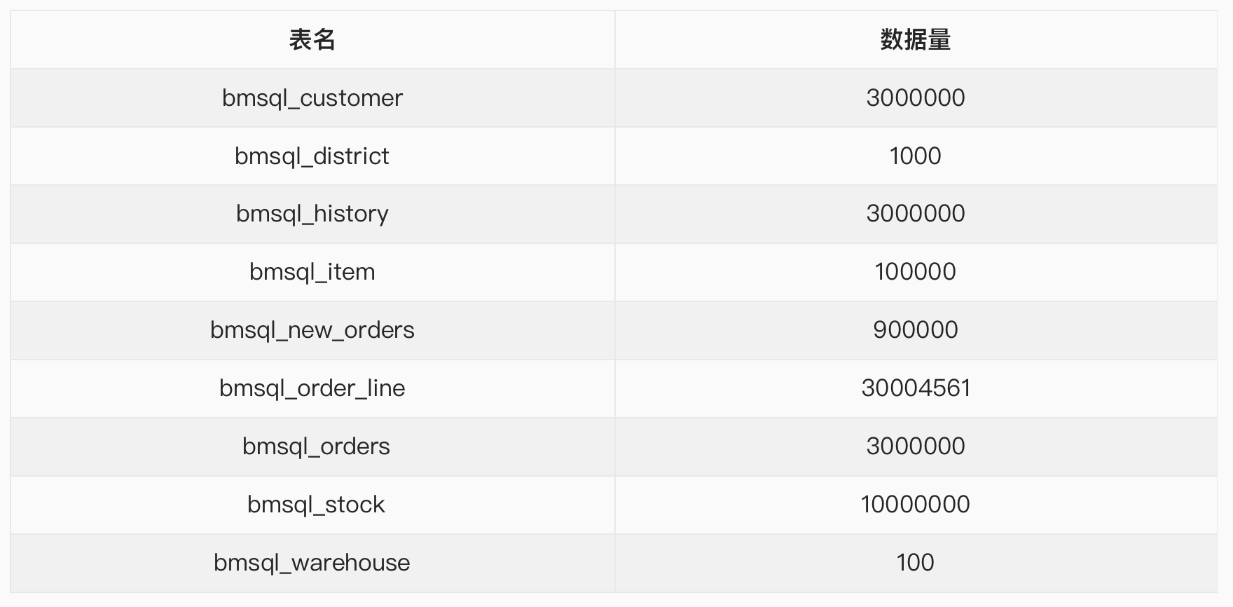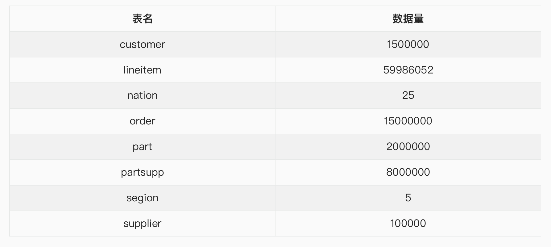 tpc-h测试数据如下表所示。